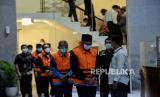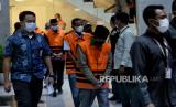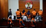 REPUBLIKA.CO.ID, JAKARTA -- Sejumlah tersangka Anggota DPRD Kabupaten Muara Enim saat dihadirkan dalam konferensi pers penahanan tersangka di Gedung Merah Putih KPK, Jakarta, Senin (13/12).
