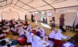 Dinas Pendidikan Kabupaten Lumajang menyediakan tenda darurat untuk menggelar pendidikan karena sebagian sekolahan masih digunakan sebagai posko pengungsian dan logistik.