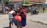 Seorang ibu dipapah anaknya saat mengungsi ke tempat yang lebih aman menyusul adanya peringatan dini tsunami di Kota Maumere, Kabupaten Sikka, NTT, Selasa (14/12/2021). Gempa berkekuatan 7,4 skala richter pada pukul 11.20 Wita di Laut Flores tersebut disusul adanya peringatan dini tsunami dari BMKG sehingga mengakibatkan warga di Kota Maumere berhamburan mengungsi karena trauma dengan tsunami yang pernah terjadi pada tahun 1992. (FOTO : ANTARA/Siska)