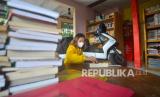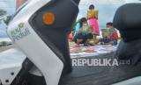REPUBLIKA.CO.ID,PADANG -- Anak-anak membaca buku yang dibawa oleh motor listrik pustaka bergerak, Ruang Baca Tanah Ombak, di Jalan Samudera, Padang, Sumatera Barat, Selasa (14/12/2021).