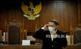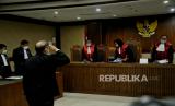 Terdakwa mantan Direktur Utama PT Pelabuhan Indonesia (Pelindo) II (Persero) Richard Joost Lino atau RJ Lino melakukan hormat usai menjalani sidang putusan di Pengadilan Tipikor, Jakarta, Selasa (14/12). RJ Lino divonis 4 tahun penjara denda Rp500 juta subsider 6 bulan kurungan karena terbukti melakukan tindak pidana korupsi dalam pengadaan dan pemeliharaan 3 unit QCC tahun 2010 . (FOTO : Republika/Thoudy Badai)