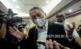Terdakwa mantan Direktur Utama PT Pelabuhan Indonesia (Pelindo) II (Persero) Richard Joost Lino atau RJ Lino meninggalkan ruang sidang usai divonis 4 tahun penjara di Pengadilan Tipikor, Jakarta, Selasa (14/12). Sidang tersebut beragendakan pembacaan putusan terkait kasus dugaan korupsi pengadaan tiga unit quay container crane (QCC) di tiga Pelabuhan yaitu Palembang, Panjang dan Pontianak Tahun 2010. Sebelumnya, RJ Lino dituntut hukuman 6 tahun penjara denda Rp500 juta subsider 6 bulan kurungan oleh jaksa penuntut umum (JPU) karena terbukti melakukan tindak pidana korupsi. (FOTO : Republika/Thoudy Badai)