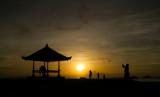 REPUBLIKA.CO.ID,SANUR -- Wisatawan menyaksikan matahari terbit di Pantai Sanur, Bali, Rabu (15/12/2021). Panorama matahari terbit menjadi daya tarik wisatawan yang berkunjung ke Pantai Sanur.