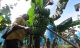 REPUBLIKA.CO.ID,BOYOLALI -- Pekerja memanen buah pisang Cavendish di lahan pertanian Bendosari, Sawit, Boyolali, Jawa Tengah, Rabu (15/12/2021).