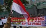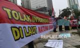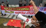 REPUBLIKA.CO.ID, JAKARTA -- Sejumlah massa yang tergabung dalam Forum Cinta Tanah Air melakukan aksi unjuk rasa di depan Kedubes Republik Rakyat China (RRC), Jakarta, Rabu (15/12/2021). Dalam aksi tersebut mereka menolak intervensi RRC atas klaim wilayah Laut Natuna Utara dan menuntut tindakan tegas dari Pemerintah Indonesia atas intervensi tersebut.