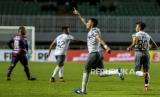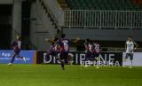 Pesepak bola Persis Solo Beto Goncalves melakukan selebrasi usai membobol gawang RANS Cilegon FC saat pertandingan Liga 2 babak 8 besar di Stadion Pakansari, Kabupaten Bogor, Jawa Barat, Rabu (15/12). Pada pertandingan tersebut RANS Cilegon FC mengalahkan Persis Solo dengan skor akhir 4-3. Republika/Putra M. Akbar (FOTO : Republika/Putra M. Akbar)