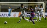 Pesepak bola Persis Solo Irfan Bachdim dibayangi Pesepak bola RANS Cilegon FC Alfin Ismail Tuasalamony saat pertandingan Liga 2 babak 8 besar di Stadion Pakansari, Kabupaten Bogor, Jawa Barat, Rabu (15/12). Pada pertandingan tersebut RANS Cilegon FC mengalahkan Persis Solo dengan skor akhir 4-3. (FOTO : Republika/Putra M. Akbar)