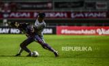 Pesepak bola Persis Solo Beto Goncalves terjatuh saat melawan RANS Cilegon FC pada pertandingan Liga 2 babak 8 besar di Stadion Pakansari, Kabupaten Bogor, Jawa Barat, Rabu (15/12). Pada pertandingan tersebut RANS Cilegon FC mengalahkan Persis Solo dengan skor akhir 4-3. Republika/Putra M. Akbar (FOTO : Republika/Putra M. Akbar)