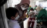 Sejumlah siswa Sekolah Dasar (SD) diperiksa kesehatannya sebelum disuntik vaksin Covid-19 di Taman Dewi Sartika, Jalan Wastukencana, Kota Bandung, Kamis (16/12). Pemerintah Kota Bandung mulai melakukan vaksinasi Covid-19 dosis pertama untuk anak usia 6-11 tahun dengan sasaran sebanyak 250 ribu anak. Foto: Republika/Abdan Syakura (FOTO : REPUBLIKA/ABDAN SYAKURA)