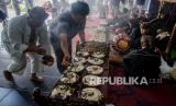 Masyarakat Sunda melaksanakan tradisi upacara Nyapuhan Parabot di Padepokan Kalang Kamuning, Cihideung, Kabupaten Bandung Barat, Jawa Barat, Selasa (14/12/2021). Upacara tradisi tersebut sebagai bentuk pelestarian dalam membersihkan, menyucikan dan mengasah perabot dalam budaya dan kesenian seperti gamelan, gong hingga tanaman agar tetap bermanfaat dalam kehidupan. (FOTO : Antara/Novrian Arbi)