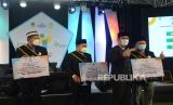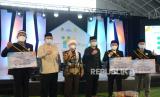 Gubernur Jawa Barat Ridwan Kamil (Emil) menyerahkan hadiah pemenang (One Pesantren One Product) OPOP 2021 saat Temu Bisnis dan Pameran Produk One Pesantren One Product (OPOP), di komplek Pesantren Daarut Tauhid (DT) Jalan Gegerkalong, Kota Bandung, Kamis (16/12). Progam yang diluncurkan Provinsi Jawa Barat ini sudah menyentuh 2.574 pesantren. OPOP bertujuan untuk mendorong pemberdayaan pesantren agar memiliki produk unggulan dan mandiri secara ekonomi. (FOTO : Edi Yusuf/Republika)
