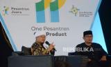 KH Abdullah Gymnastiar (Aa Gym) dan Gubernur Jawa Barat Ridwan Kamil (Emil) berdialog dengan perwakilan pesantren se-Jawa Barat yang hadir saat acara Temu Bisnis dan Pameran Produk One Pesantren One Product (OPOP), di komplek Pesantren Daarut Tauhid (DT) Jalan Gegerkalong, Kota Bandung, Kamis (16/12). Progam yang diluncurkan Provinsi Jawa Barat ini sudah menyentuh 2.574 pesantren. OPOP bertujuan untuk mendorong pemberdayaan pesantren agar memiliki produk unggulan dan mandiri secara ekonomi. (FOTO : Edi Yusuf/Republika)