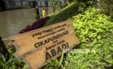 Warga membawa karung berisi sampah saat aksi bersih sungai di bantaran Sungai Cikapundung, Kota Bandung, Jumat (17/12). Aksi bersih sungai yang bertajuk Cleanup Day tersebut merupakan bentuk kepedulian sekaligus salah satu upaya edukasi kepada warga dalam menjaga kebersihan sungai. Foto: Republika/Abdan Syakura (FOTO : REPUBLIKA/ABDAN SYAKURA)