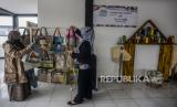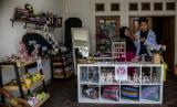Warga melihat produk kerajinan yang dijual di Kampung Perca, Sindangsari, Kota Bogor, Jawa Barat, Jumat (17/12). Kampung Perca yang memproduksi berbagai macam produk kerajinan dengan menggunakan bahan kain sisa tersebut menjadi destinasi wisata baru di Kota Bogor serta memberdayakan ekonomi masyarakat. Republika/Putra M. Akbar (FOTO : Republika/Putra M. Akbar)
