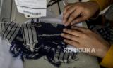 Warga saat menjahit menggunakan bahan kain perca di Kampung Perca, Sindangsari, Kota Bogor, Jawa Barat, Jumat (17/12). Kampung Perca yang memproduksi berbagai macam produk kerajinan dengan menggunakan bahan kain sisa tersebut menjadi destinasi wisata baru di Kota Bogor serta memberdayakan ekonomi masyarakat. Republika/Putra M. Akbar (FOTO : Republika)