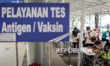 REPUBLIKA.CO.ID, JAKARTA -- Calon penumpang menunggu jadwal keberangkatan kereta api di Stasiun Pasar Senen, Jakarta, Jumat (17/12/2021). Pemerintah memberlakukan syarat perjalanan jarak jauh yang menggunakan semua moda transportasi pada saat Natal 2021 dan Tahun Baru 2022 yakni sudah mendapatkan vaksinasi dosis kedua dan hasil tes antigen yang sampelnya diambil dalam kurun waktu maksimal 1x24 jam.