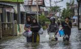 REPUBLIKA.CO.ID, BANJAR -- Sejumlah warga membawa barang berharga melintasi banjir yang merendam permukiman di Desa Bincau Muara, Kabupaten Banjar, Kalimantan Selatan, Jumat (17/12/2021). Berdasarkan data sementara Badan Penanggulangan Bencana Daerah (BPBD) Kabupaten Banjar banjir yang melanda di daerah itu telah merendam 900 lebih rumah warga.
