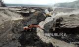 Balai Besar Wilayah Sungai (BBWS) Brantas mempercepat proses pembuatan tanggul dengan mengerahkan 22 eskavator dan 2 buldoser sebagai upaya mengembalikan aliran lahar ke jalur semula agar tidak meluber ke permukiman. ANTARA FOTO/Budi Candra Setyaa