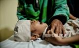 Ekspresi anak saat operasi khitan di Masjid Nurul Hidayah, Jakarta, Ahad (19/12). Sebanyak 60 anak mengikuti kegiatan Khitan Ceria Anak Sholeh yang diselenggarakan dalam rangka Festival BI Religi bersama Layanan Kesehatan Cuma-Cuma Dompet Dhuafa, yang diselenggarakan mulai dari tanggal (15/12) hingga Kamis (23/12) dengan target peserta khitan sebanyak 500 anak di area Jabodetabek. Republika/Thoudy Badai (FOTO : Republika/Thoudy Badai)