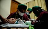 Tenaga kesehatan melakukan operasi khitan di Masjid Nurul Hidayah, Jakarta, Ahad (19/12). Sebanyak 60 anak mengikuti kegiatan Khitan Ceria Anak Sholeh yang diselenggarakan dalam rangka Festival BI Religi bersama Layanan Kesehatan Cuma-Cuma Dompet Dhuafa, yang diselenggarakan mulai dari tanggal (15/12) hingga Kamis (23/12) dengan target peserta khitan sebanyak 500 anak di area Jabodetabek. Republika/Thoudy Badai (FOTO : Republika/Thoudy Badai)
