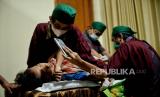 Tenaga kesehatan bersiap melakukan operasi khitan di Masjid Nurul Hidayah, Jakarta, Ahad (19/12). Sebanyak 60 anak mengikuti kegiatan Khitan Ceria Anak Sholeh yang diselenggarakan dalam rangka Festival BI Religi bersama Layanan Kesehatan Cuma-Cuma Dompet Dhuafa, yang diselenggarakan mulai dari tanggal (15/12) hingga Kamis (23/12) dengan target peserta khitan sebanyak 500 anak di area Jabodetabek. Republika/Thoudy Badai (FOTO : Republika/Thoudy Badai)