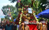 REPUBLIKA.CO.ID,KUDUS -- Warga mengarak gunungan yang berisi durian dan buah-buahan lainnya saat Gebyar Ngunduh Durian di Dukuh Pelang, Margorejo, Dawe, Kudus, Jawa Tengah, Ahad (19/12/2021).