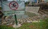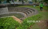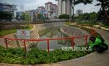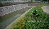 Petugas Suku Dinas Pertamanan dan Hutan Kota Jakarta Pusat melakukan perawantan di Taman Bio Trans, Jakarta, Senin (20/12). Taman Bio Trans yang baru diresmikan tersebut menjadi upaya Pemprov DKI Jakarta untuk mewujudkan kota ramah lingkungan dan tidak hanya berfungsi menjadi taman terbuka, tetapi juga berguna sebagai pengendali banjir ketika terjadi peningkatan volume air di saluran sungai. (FOTO : Prayogi/Republika.)