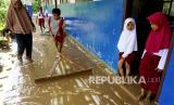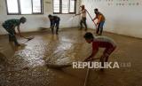 REPUBLIKA.CO.ID, MAMUJU -- Sejumlah relawan membersihkan sekolah yang tertimbun lumpur akibat banjir di Desa Toabo, Mamuju, Sulawesi Barat, Senin (20/12/2021). BNPB dan Pemadam kebakaran Mamuju mulai melakukan pembersihan dan menyalurkan bantuan logistik bagi warga yang terdampak banjir akibat luapan air sungai.