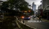 Bus Transjakarta melintas di Jalan Blora, Jakarta, Senin (20/12). Pemerintah Provinsi DKI Jakarta berencana menjadikan Jalan Blora sebagai kawasan zona rendah emisi atau low emission zone (LEZ) seperti yang sudah diterapkan di kawasan Kota Tua. Nantinya,, kawasan LEZ yang berorientasi transit oriented development (TOD) itu akan diproritaskan untuk pejalan kaki dan kendaraan ramah lingkungan. (FOTO : Republika/Putra M Akbar)
