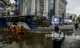 REPUBLIKA.CO.ID,JAKARTA -- Bus Transjakarta melintas di Jalan Blora, Jakarta, Senin (20/12).