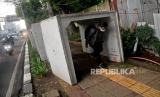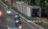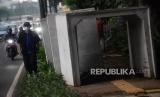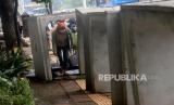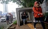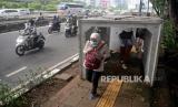 REPUBLIKA.CO.ID,JAKARTA -- Pejalan kaki melintas di antara beton saluran air yang berada di jalur pedestrian, kawasan Gatot Subroto, Jakarta, Senin (20/12).