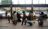 Sejumlah penumpang menunggu keberangkatan kereta api di Stasiun Senen, Jakarta, Selasa (21/12). Jelang libur Natal dan Tahun Baru kepadatan penumpang kereta api jarak jauh mulai terlihat di stasiun Senen.Prayogi/Republika (FOTO : Prayogi/Republika.)