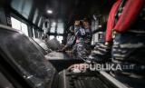 Panglima Komando Lintas Laut Militer yang bertindak selaku Direktur Latihan Laksamana Muda TNI Erwin S. Aldedharma (kanan) meninjau peran tempur bahaya udara dan bahaya permukaan saat berlayar di Laut Jawa, Selasa (21/12/2021). Latihan tersebut bagian dari Latihan Operasi Pendaratan Administrasi (Latopsratmin) 2021 guna meningkatkan kemampuan dan profesionalisme prajurit serta unsur Komando Lintas Laut Militer (Kolinlamil) dalam pelaksanaan operasi pendaratan administrasi. (FOTO : Antara/Fauzan)