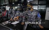 Panglima Komando Lintas Laut Militer yang bertindak selaku Direktur Latihan Laksamana Muda TNI Erwin S. Aldedharma (kanan) meninjau ploting peta saat peran tempur bahaya udara dan bahaya permukaan saat berlayar di Laut Jawa, Selasa (21/12/2021). Latihan tersebut bagian dari Latihan Operasi Pendaratan Administrasi (Latopsratmin) 2021 guna meningkatkan kemampuan dan profesionalisme prajurit serta unsur Komando Lintas Laut Militer (Kolinlamil) dalam pelaksanaan operasi pendaratan administrasi. (FOTO : Antara/Fauzan)