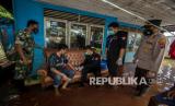 Kapolsek Martapura Timur Ipda Aulya Safii (kanan) memantau vaksinasi COVID-19 ditengah banjir di Desa Mekar, Kabupaten Banjar, Kalimantan Selatan, Selasa (21/12/2021). Dinas Kesehatan Kabupaten Banjar bersama Polsek Martapura Timur melakukan vaksinasi COVID-19 dari rumah ke rumah ditengah banjir untuk meninglatkan capaian target vaksin serta mencapai kekebalan komunal menuju Indonesia sehat bebas COVID-19. (FOTO : Antara/Bayu Pratama S)