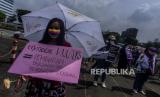 REPUBLIKA.CO.ID, JAKARTA -- Sejumlah massa aksi yang tergabung dalam Jaringan Pembela Hak Perempuan Korban Kekerasan Seksual melakukan unjuk rasa di depan Gedung DPR, Jakarta, Rabu (22/12).