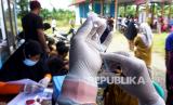 Tim kesehatan melakukan vaksinasi COVID-19 kepada warga yang akan melakukan pencoblosan kepala desa di TPS 2 Desa Bunde, Mamuju, Sulawesi Barat, Rabu (22/12/2021). Berdasarkan Perda kabupaten Mamuju, warga yang tidak menunjukkan kartu vaksin COVID-19 tidak dapat melakukan pemilihan desa secara serentak di daerah tersebut. (FOTO : ANTARA/Akbar Nugroho Gumay)