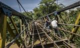 REPUBLIKA.CO.ID, LEBAK -- Warga secara swadaya memperbaiki jembatan gantung yang rusak di Rangkasbitung, Lebak, Banten, Rabu (22/12/2021). Jembatan gantung penghubung antardesa yang rusak parah tersebut diperbaiki melalui swadaya masyarakat dengan cara bergotong royong tanpa bantuan pemerintah setempat.