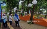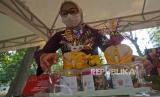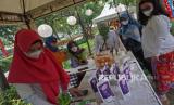 Pengunjung melihat-lihat produk yang dipamerkan dalam Gelar Produk Dekranasda dan Puncak Peringatan Hari Ibu di Taman Sumenep, Menteng, Jakarta, Rabu (22/12). Kegiatan bertemakan Kerajinan Tangan Menuju Pasar Global tersebut diselenggarakan sebagai bentuk dukungan para pengrajin yang sebagian besar adalah perempuan sekaligus menjadi motivasi para perajin lokal dan pengusaha UMKM untuk bangkit.Praayogi/Republika (FOTO : Prayogi/Republika.)