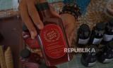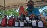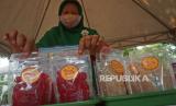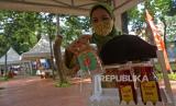 Peserta menunjukan produk yang dipamerkan dalam Gelar Produk Dekranasda dan Puncak Peringatan Hari Ibu di Taman Sumenep, Menteng, Jakarta, Rabu (22/12). Kegiatan bertemakan Kerajinan Tangan Menuju Pasar Global tersebut diselenggarakan sebagai bentuk dukungan para pengrajin yang sebagian besar adalah perempuan sekaligus menjadi motivasi para perajin lokal dan pengusaha UMKM untuk bangkit.Praayogi/Republika (FOTO : Prayogi/Republika.)
