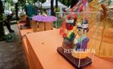 Peserta menata produk yang dipamerkan dalam Gelar Produk Dekranasda dan Puncak Peringatan Hari Ibu di Taman Sumenep, Menteng, Jakarta, Rabu (22/12). Kegiatan bertemakan Kerajinan Tangan Menuju Pasar Global tersebut diselenggarakan sebagai bentuk dukungan para pengrajin yang sebagian besar adalah perempuan sekaligus menjadi motivasi para perajin lokal dan pengusaha UMKM untuk bangkit. (FOTO : Prayogi/Republika.)