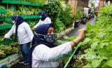 Ibu-ibu kelompok wanita tani dari Kampung Berseri Astra, Kampung Ramah Lingkungan Asuransi Astra (KBA Karina) RW 01 Pela Mampang Jakarta merawat tanaman sayur di lingkunganya, Kamis (23/12/2021). (FOTO : Dok Astra)