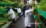 REPUBLIKA.CO.ID, JAKARTA -- Ibu-ibu kelompok wanita tani dari Kampung Berseri Astra, Kampung Ramah Lingkungan Asuransi Astra (KBA Karina) RW 01 Pela Mampang Jakarta merawat tanaman sayur di lingkungannya, Kamis (23/12/2021).