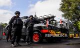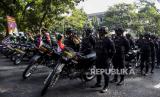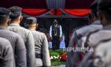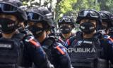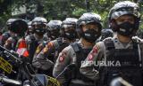 Sejumlah personel kepolisian mengikuti Apel Gelar Pasukan Operasi Lilin Lodaya 2021 di depan Gedung Sate, Jalan Diponegoro, Kota Bandung, Kamis (23/12). Apel gabungan yang diikuti oleh TNI, Polri, Basarnas, Diskar PB dan instansi lainnya tersebut untuk meningkatkan serta memberikan keamanan dan kenyamanan perayaan Natal 2021 dan Tahun Baru 2022. Foto: Republika/Abdan Syakura (FOTO : REPUBLIKA/ABDAN SYAKURA)