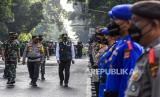 Sejumlah personel kepolisian dan anggota TNI mengikuti Apel Gelar Pasukan Operasi Lilin Lodaya 2021 di depan Gedung Sate, Jalan Diponegoro, Kota Bandung, Kamis (23/12). Apel gabungan yang diikuti oleh TNI, Polri, Basarnas, Diskar PB dan instansi lainnya tersebut untuk meningkatkan serta memberikan keamanan dan kenyamanan perayaan Natal 2021 dan Tahun Baru 2022. Foto: Republika/Abdan Syakura (FOTO : REPUBLIKA/ABDAN SYAKURA)
