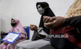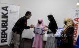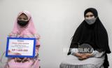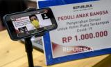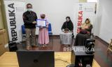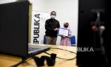 REPUBLIKA.CO.ID, BANDUNG -- Pembawa acara memandu acara Penyerahan Donasi Untuk Yatim Piatu Terdampak Covid-19 yang disiarkan langsung secara daring di Kantor Perwakilan Republika Jawa Barat, Jalan Mangga, Kota Bandung, Kamis (23/12). Harian Republika menyerahkan donasi tahap pertama dari para donatur dan pembaca Republika kepada sedikitnya 205 anak yatim piatu terdampak Covid-19 di berbagai daerah di Indonesia.