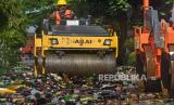 REPUBLIKA.CO.ID, SERANG -- Petugas mengoperasikan alat berat saat pemusnahan ribuan botol minuman keras (miras) ilegal di Serang, Banten, Kamis (23/12/2021). Polda Banten memusnahkan 22.900 botol miras ilegal dan 52 jerigen minuman oplosan hasil Operasi Pekat Cipta Kondisi selama bulan Desember 2021.