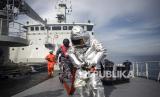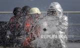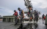 REPUBLIKA.CO.ID, SELAT SUNDA Sejumlah prajurit TNI AL awak KRI Teluk Bintuni-520 memadamkan api dalam simulasi Peran Penyelamatan Kapal (PEK) saat berlayar di perairan Selat Sunda, Kamis (23/12/2021). Latihan yang merupakan bagian dari Latihan Operasi Pendaratan Administrasi (Latopsratmin) 2021 itu dilakukan guna meningkatkan kemampuan dan profesionalisme prajurit dalam situasi operasi militer perang