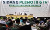 REPUBLIKA.CO.ID, BANDAR LAMPUNG -- Suasana sidang pleno pada Muktamar Nahdlatul Ulama (NU) ke-34 di Universitas Lampung, Lampung, Kamis (23/12/2021). Muktamar NU ke-34 diantaranya beragendakan pemilihan Rais Aam dan Ketua Umum PBNU periode 2021-2026