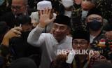REPUBLIKA.CO.ID, BANDAR LAMPUNG -- Ketua Umum PBNU terpilih Yahya Cholil Staquf (tengah) melambaikan tangan usai pemilihan Ketua Umum PBNU pada Muktamar Nahdlatul Ulama (NU) ke-34 di Universitas Lampung, Lampung, Jumat (24/12/2021). Yahya Cholil Staquf terpilih sebagai Ketua Umum PBNU periode 2021-2026 pada Muktamar NU ke-34 mengalahkan Said Aqil Siradj.
